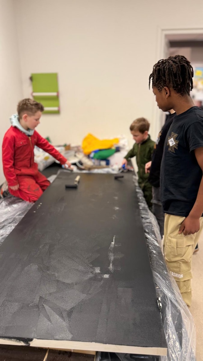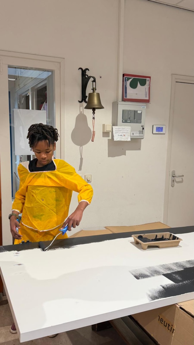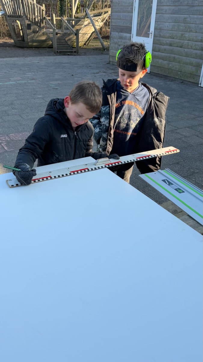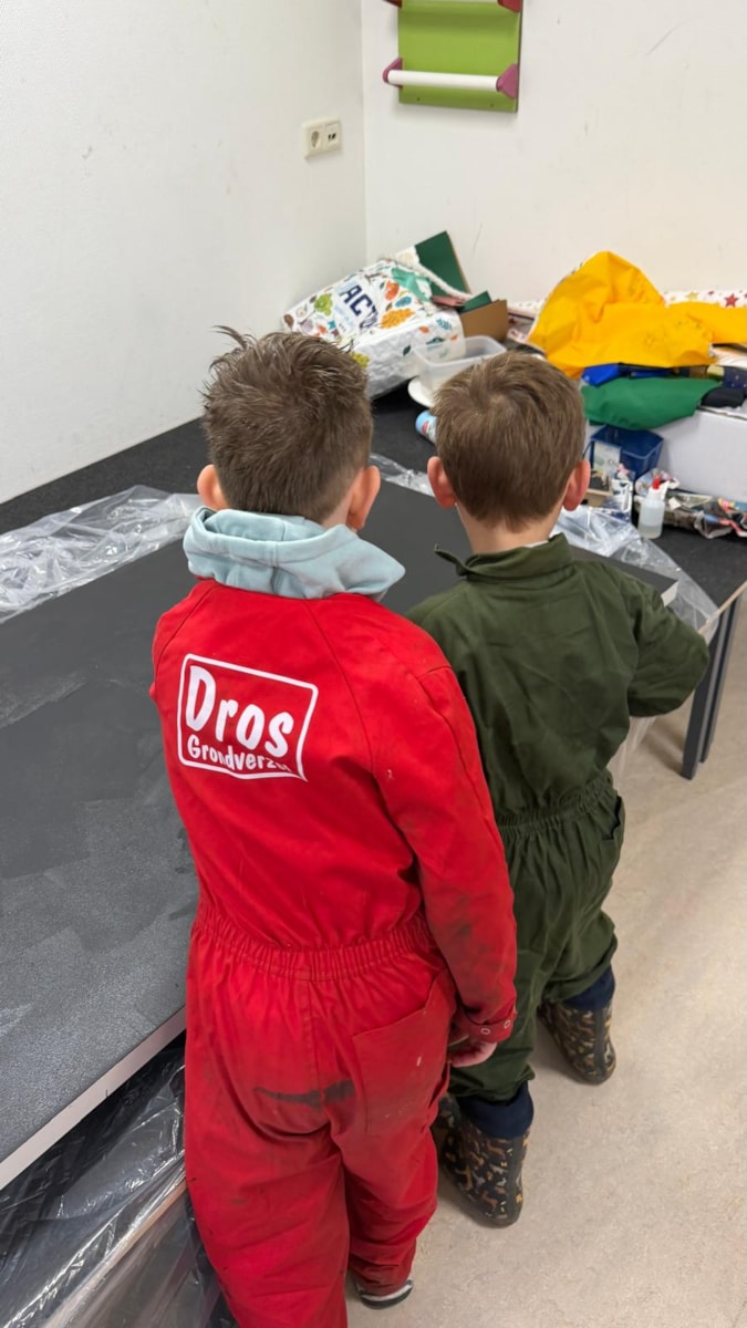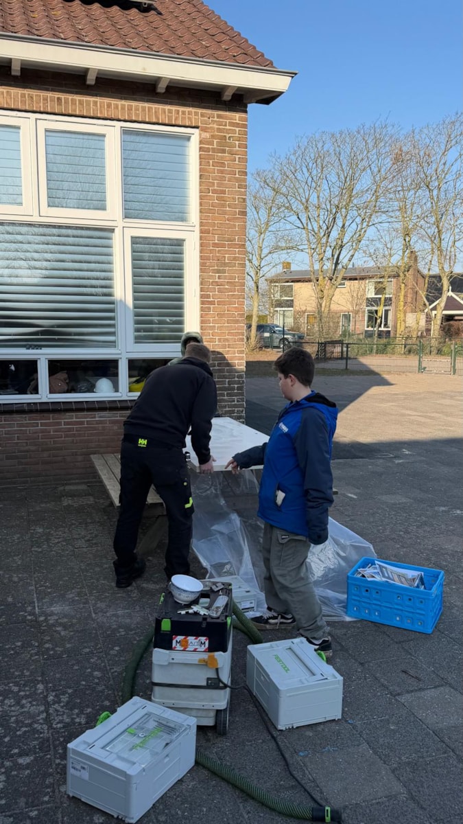 De vader van Milou uit groep 5 heeft ons heel goed geholpen en de vader van Moos en Luus uit groep 4 ook. Dat was super fijn en ook gezellig om samen te doen. Nu ziet de hal er al heel mooi uit, maar we zijn nog niet helemaal klaar.