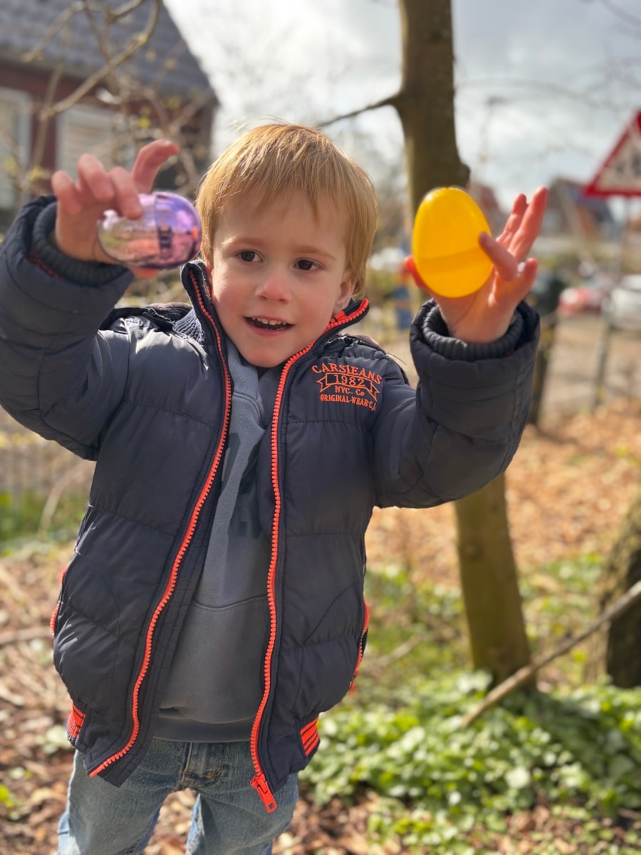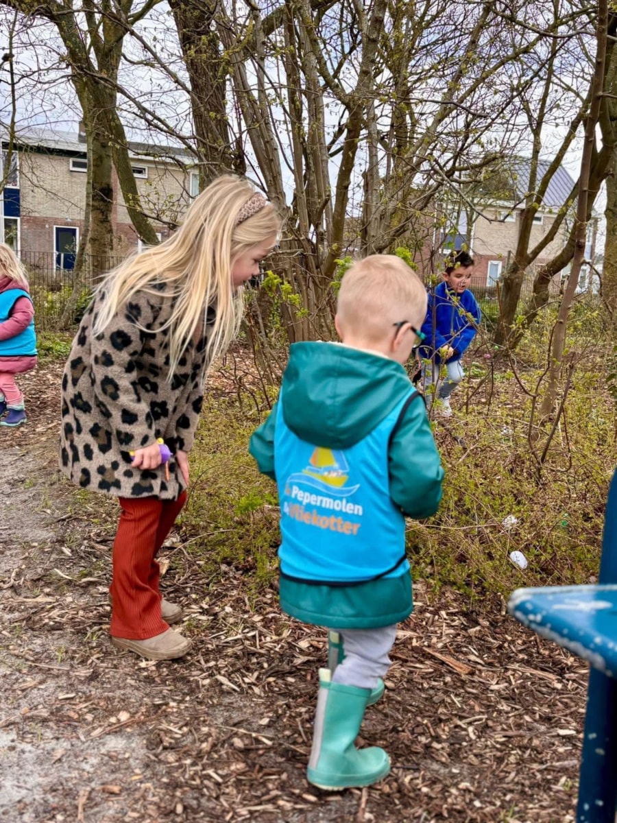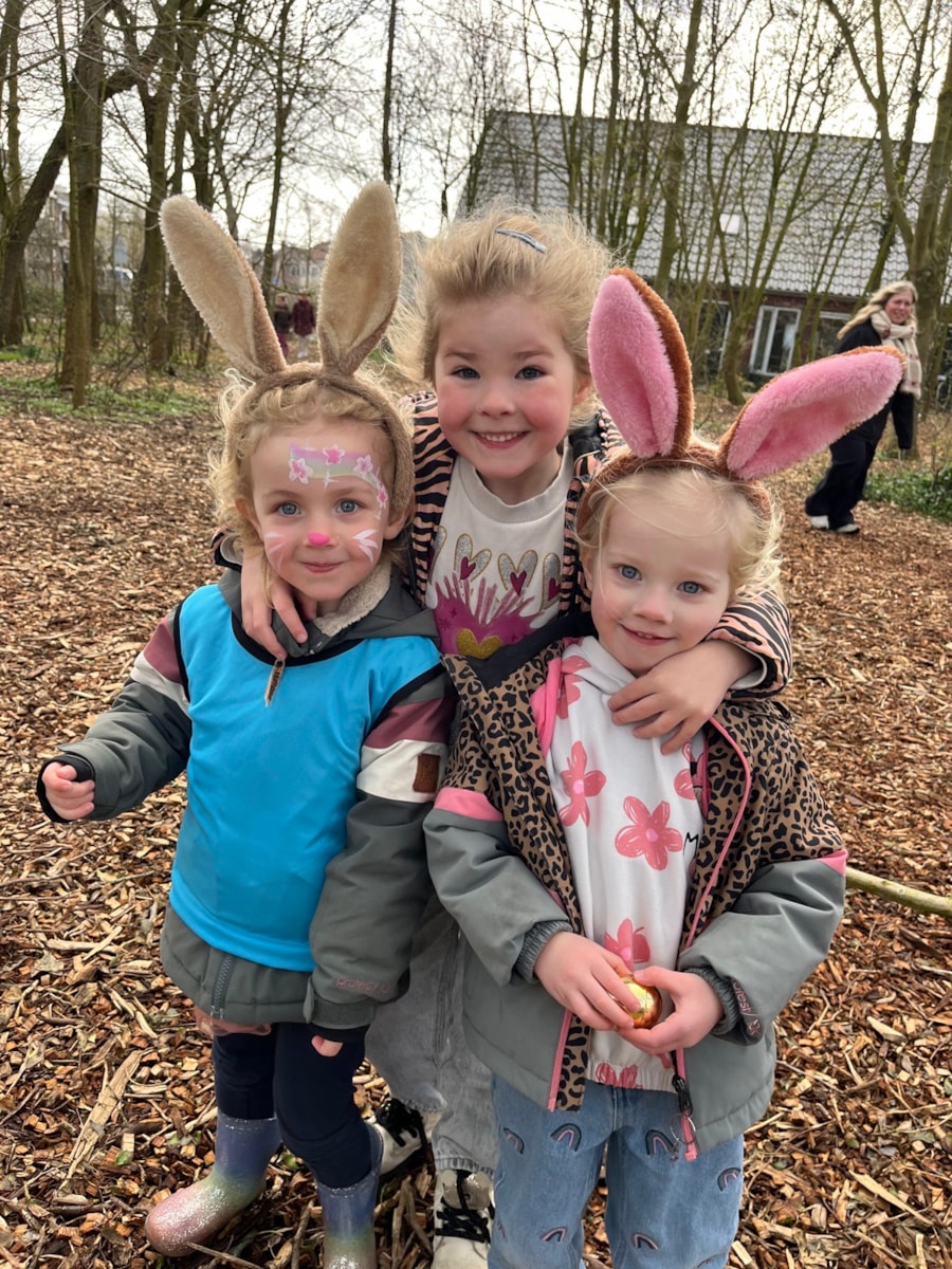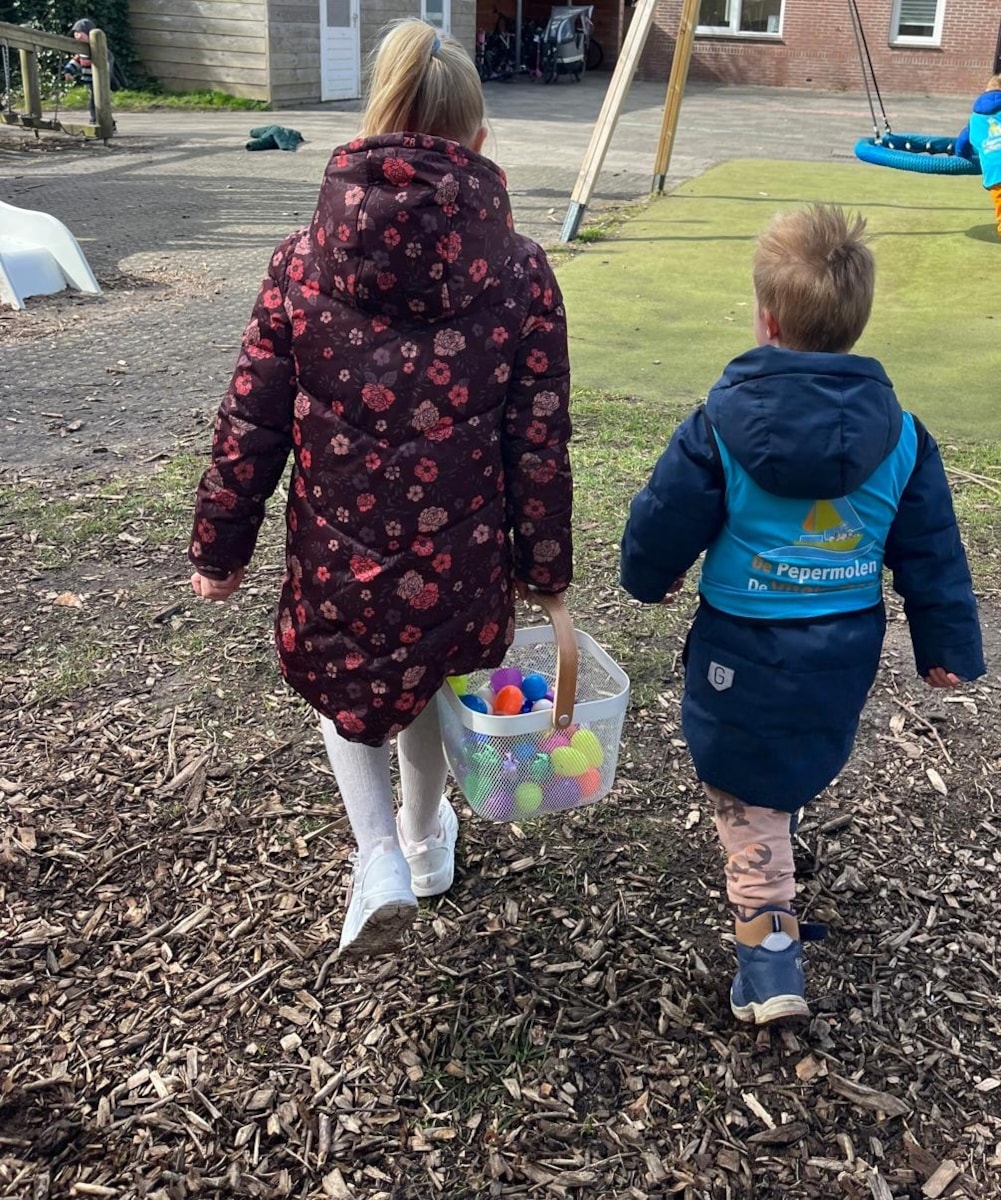 Gisteren zijn de peuters op bezoek geweest om paaseieren te zoeken. De kleuters hebben ze eerst zorgvuldig verstopt en daarna is er samen gezocht. Met aan het einde 2 echte chocoladepaaseitjes!